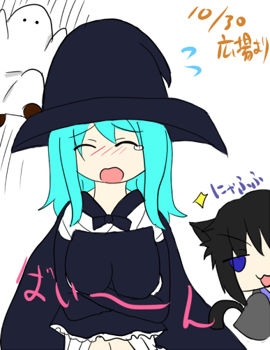 胸がでかくなったり尻触られたりで「わーん!涙」となっている犬と「計画通り」なアルさんと「トリック!!」な白ゴーストさんを描いてみました(笑)